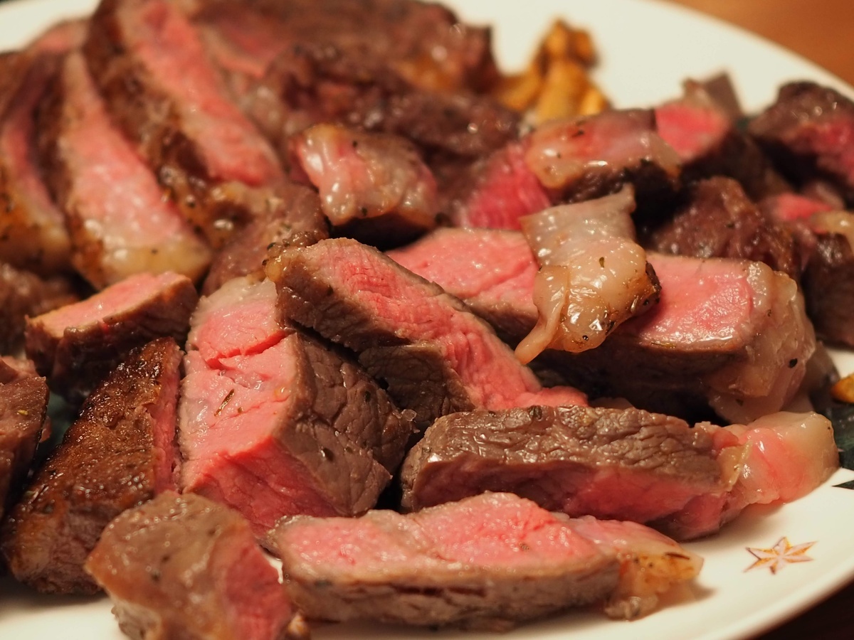 これは自宅での様子ですが、レアだけどしっかり火が通ってる肉が作れます。とても美味しいです。塩とニンニクをつけて私は食べます。